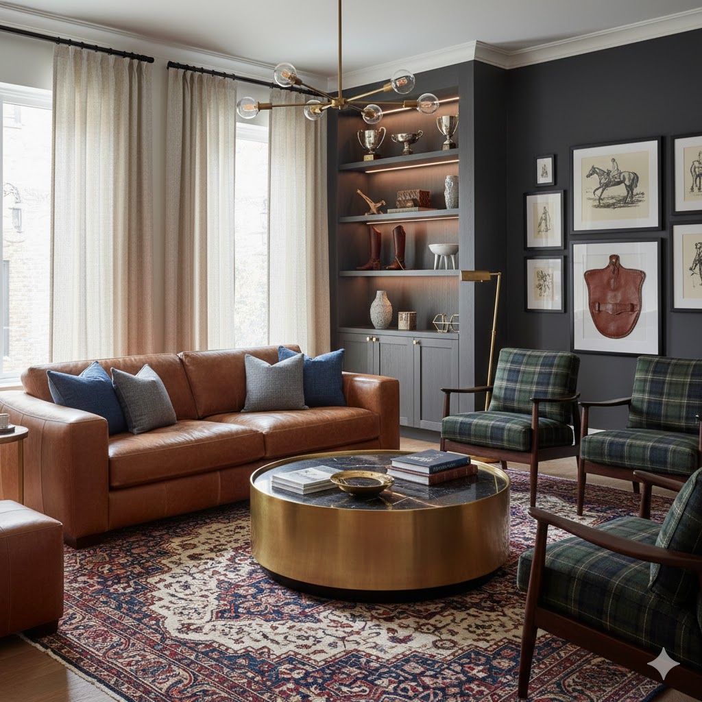 - Add subtle equestrian-inspired accents like a leather ottoman or brass horseshoe bowl