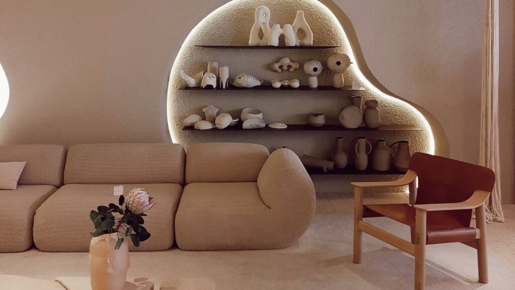 - Incorporate curved, oversized “fat furniture” with rounded backs and plush forms